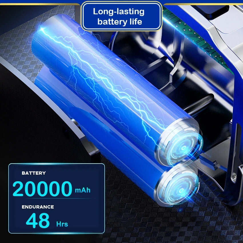 Emergency Charging: Built-in 20000mAh large-capacity batteries, can last 3-8 hours of fully charged lighting. Also can be used as a USB charging device for cell phone charging.