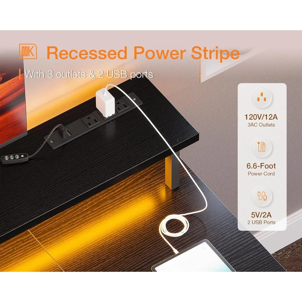 48 " Gaming Desk w/ LED Lights & Power Outlets, Computer Desk w/ Monitor Stand