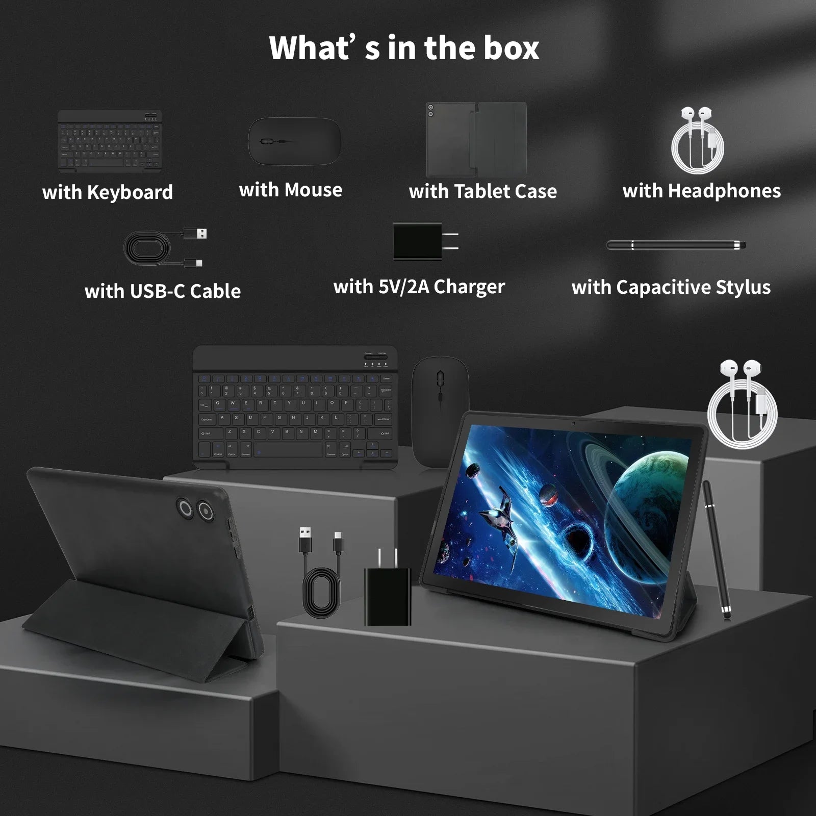Android 14 10" Tablet A523, 8GB+64GB, 5000mAh, Face Unlock, w/ Keyboard & Mouse