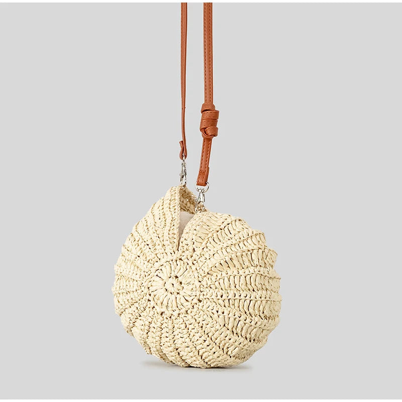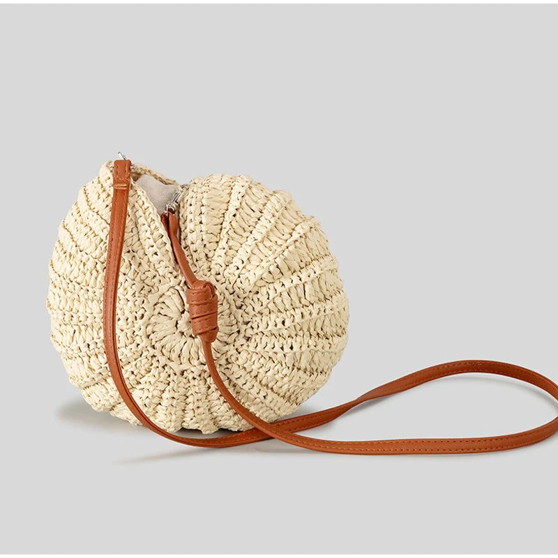 Summer Round Conch Grass Woven Shoulder Bag, Beach Vacation Bag, Fashionable Handbag