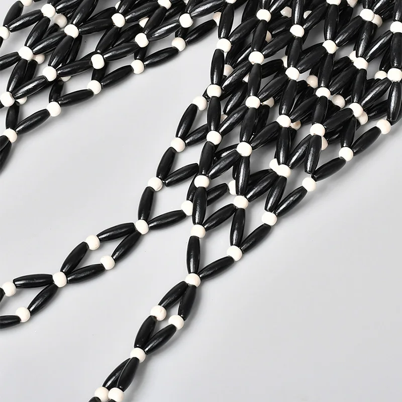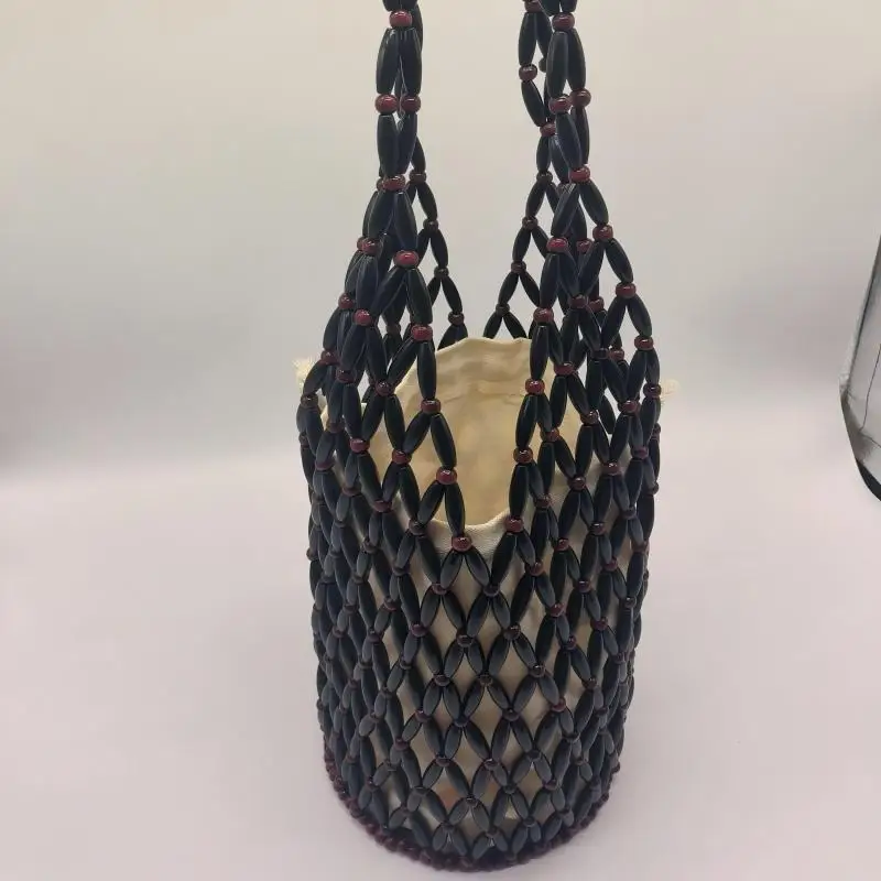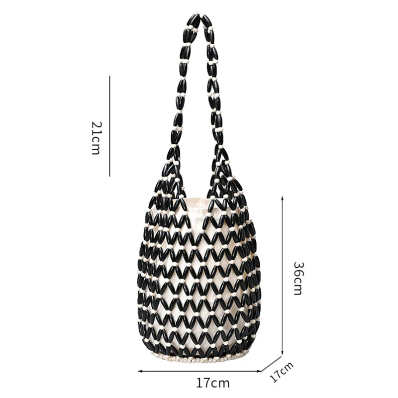 Black White Wooden Women's Hollow Beaded Seaside Handheld Shoulder Underarm Bag