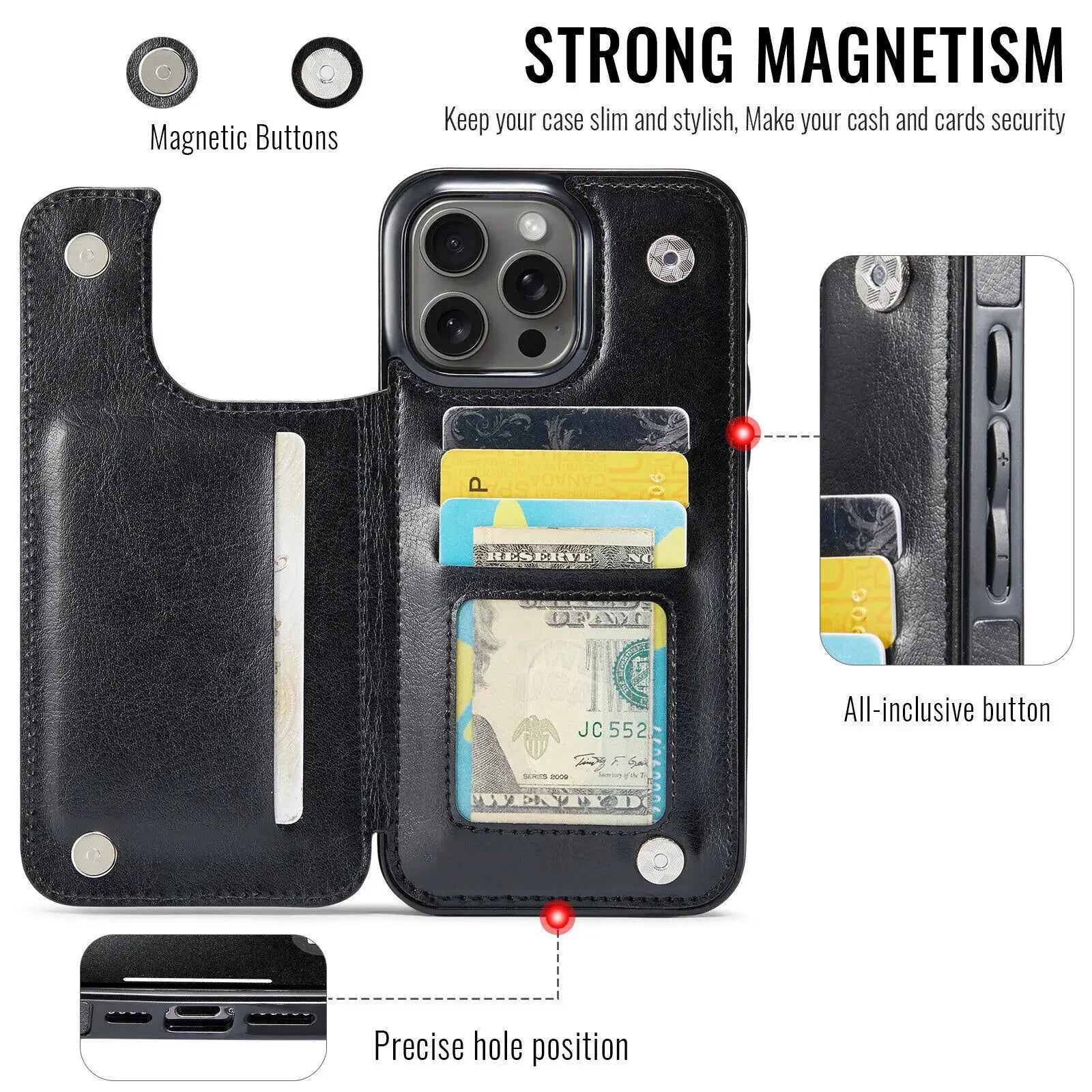 - PRACTICAL CARD HOLDER: Double Magnetic Buttons Flip Design Wallet case for women and men with 4 card slots for ID card,credit cards or some cash, without taking purse to outdoor. Solve daily consumption.