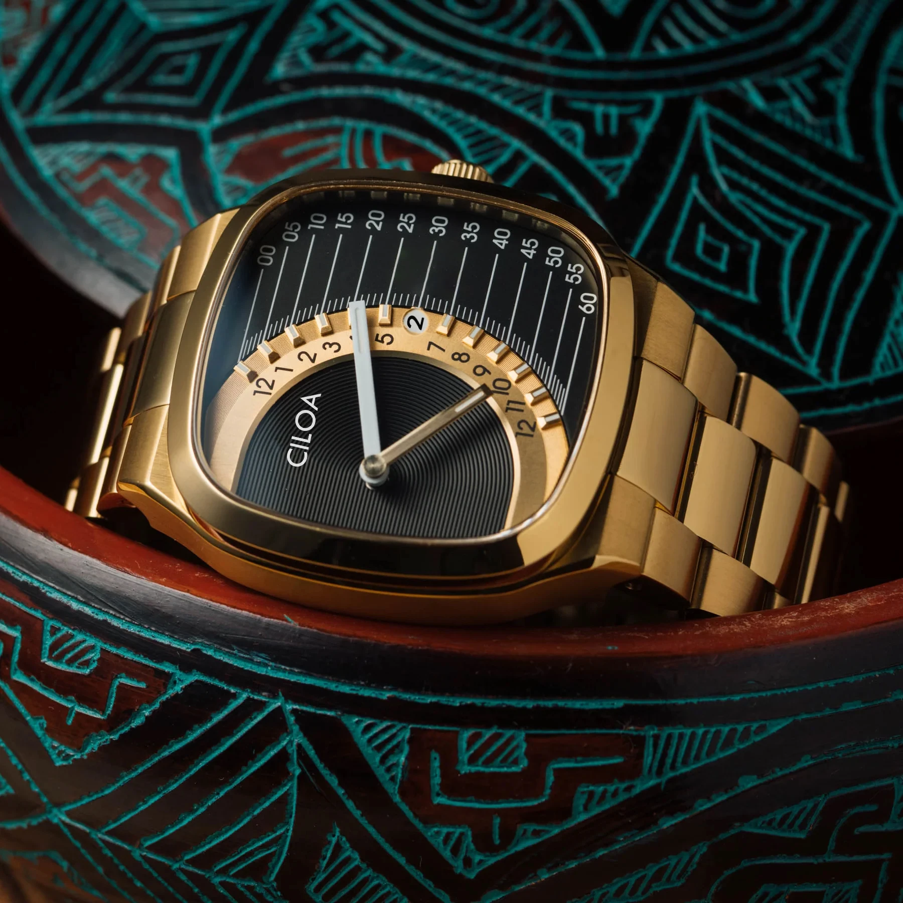 CILOA retrosquare watch men's stainless steel strap gold waterproof quartz watch