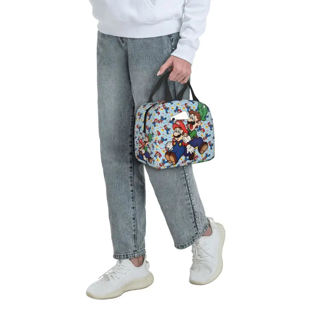 Custom Mario Super Bros Insulated Lunch Bag Reusable Thermal Cooler Lunch Box M7