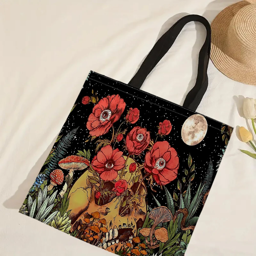 Cute Mushroom Print Shopping Bag Lady Handbag, Eco Reusable Large Tote Shop Bags