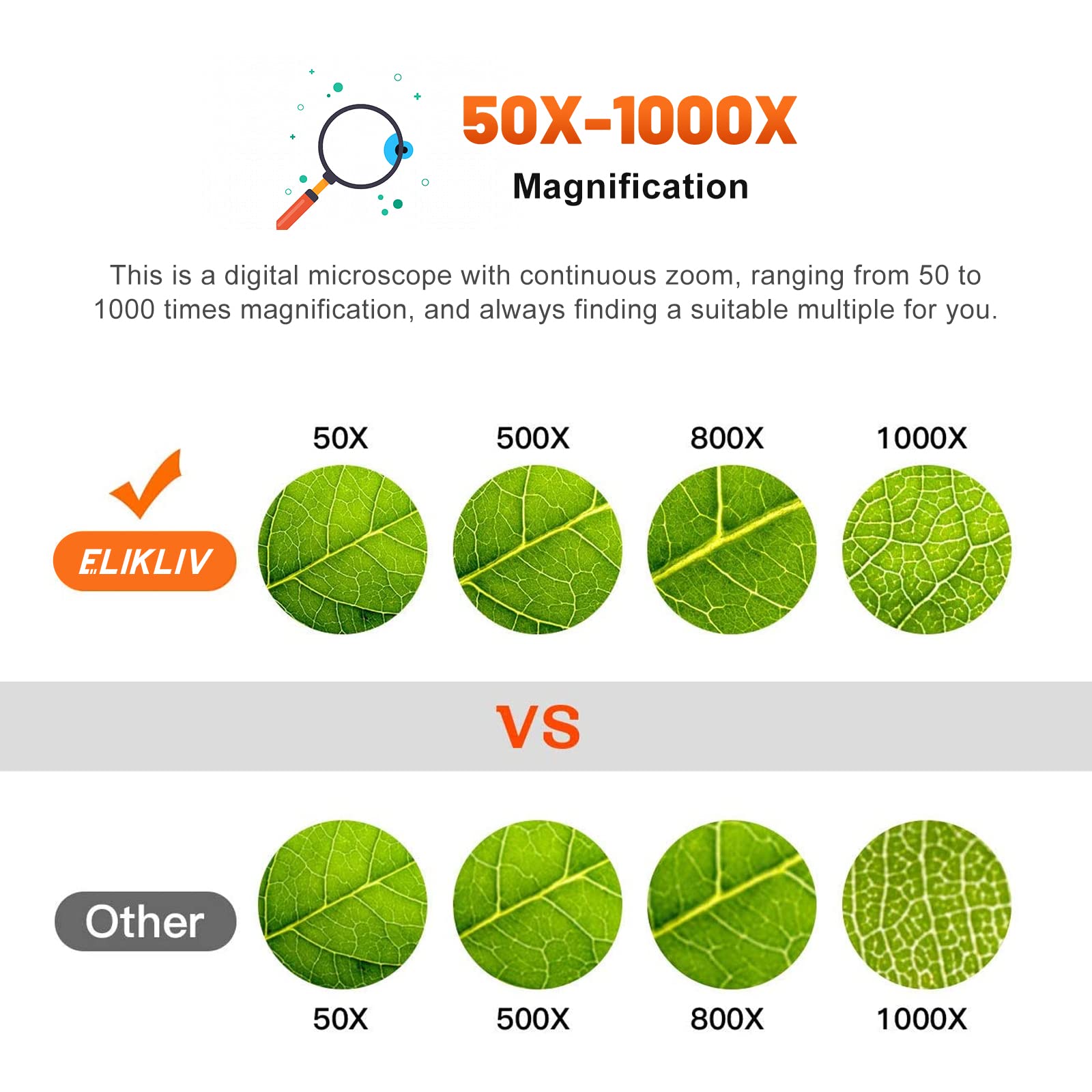 Elikliv Microscope, LCD Digital Coin Microscope 1000x, Coin Magnifier with 8 Adjustable LED Lights, PC View Compatible with Windows/MacBook, EDM4, 4.3-Inch