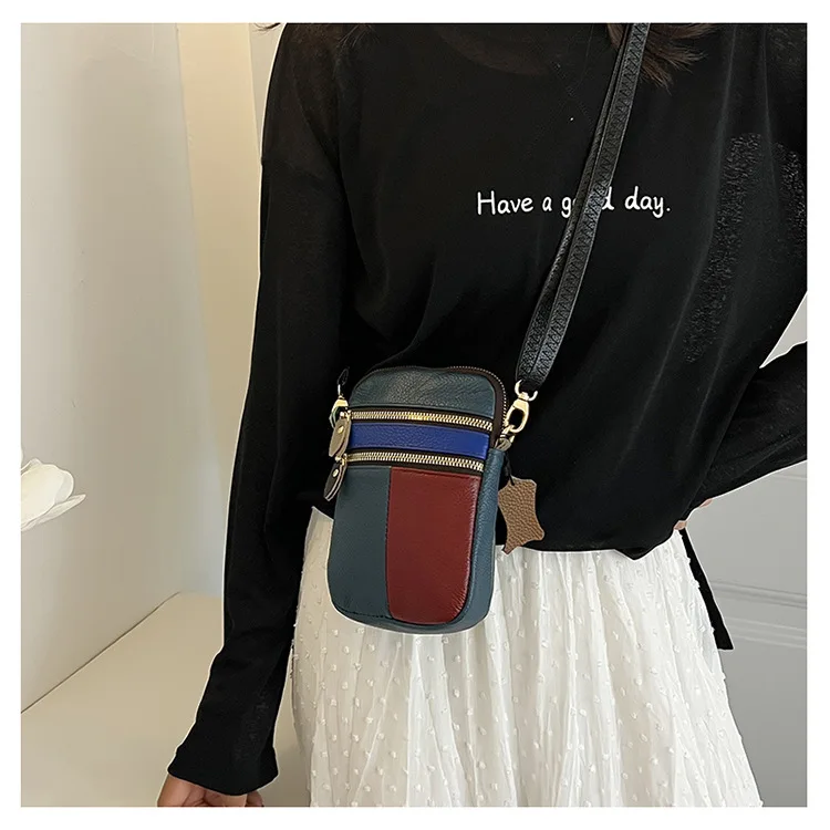 Fashion Soft Leather Women Shoulder Bag Multi Zipper Soft Mobile Phone Bag
