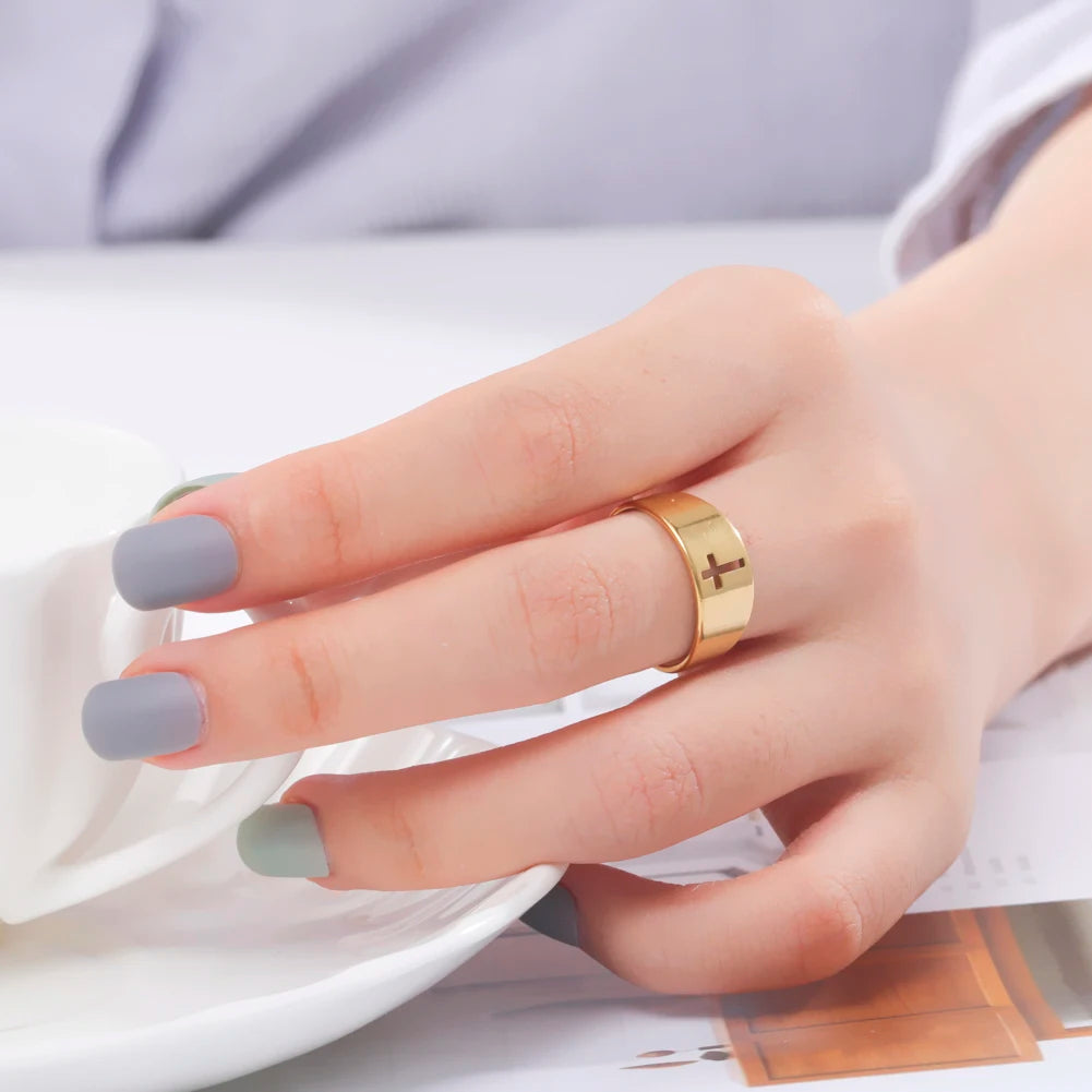Crafted from high-quality stainless steel materials, this Cross Ring stands as a symbol of faith, hope, and resilience. Its sleek and minimalist design makes it versatile for any occasion, from everyday wear to special events.