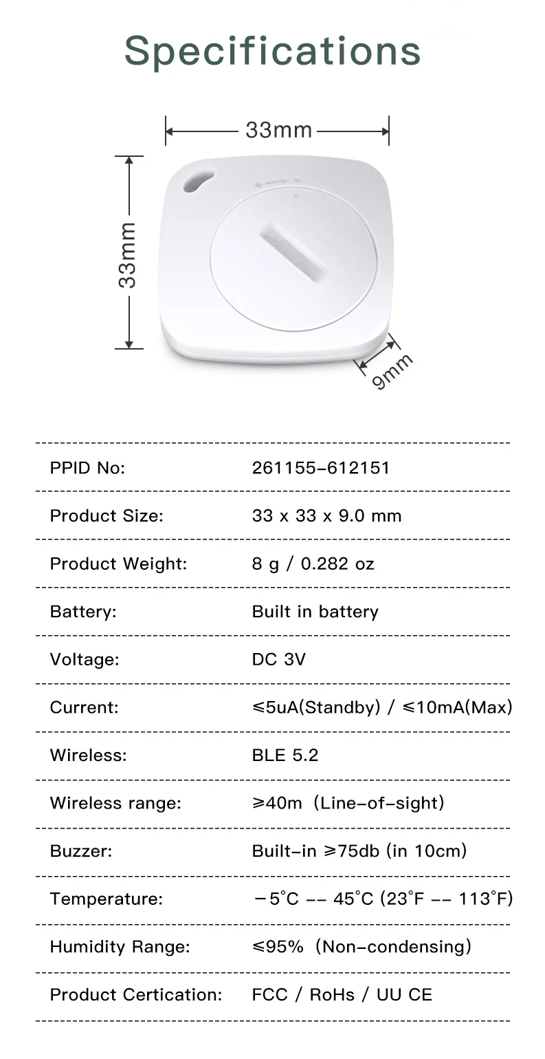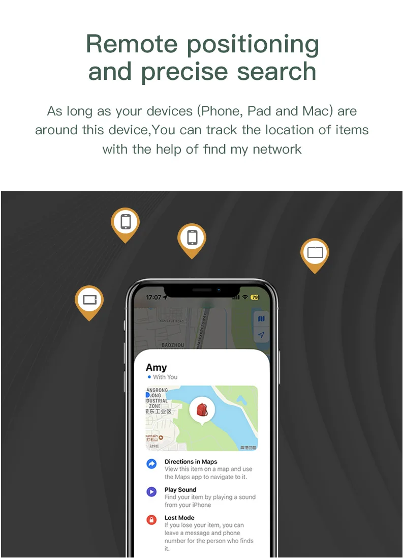• Bluetooth Smart Tag :Connects to your device via Bluetooth for real-time tracking and monitoring.