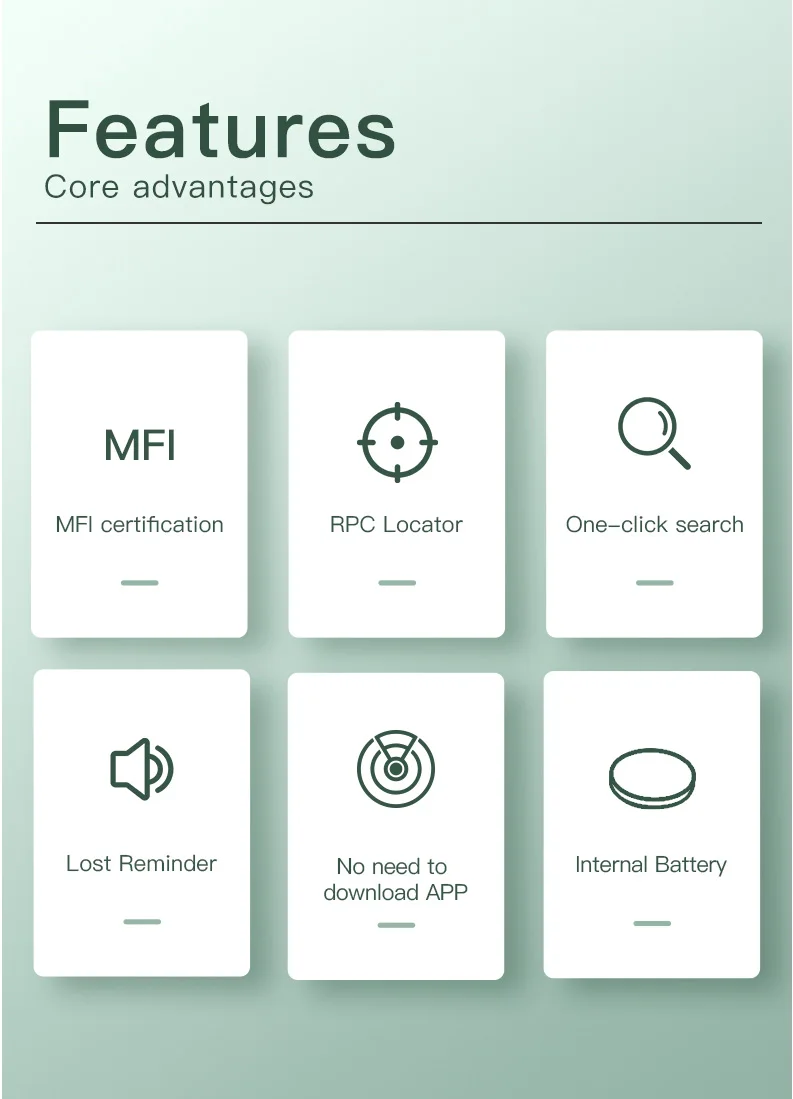 ●Accessibility: Locate/Record the Location, Directions in Maps,Play Sound, Lost Mode, Name/Rename the Item, Customize Item Icon