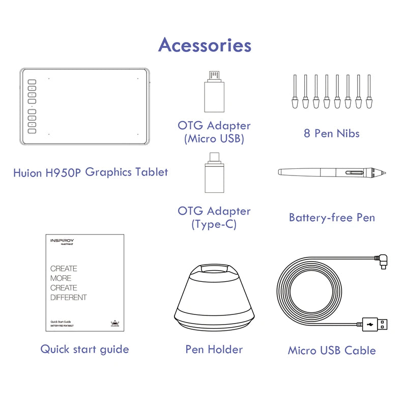 H950P Ultrathin Graphic Digital Tablets Pro-Drawing Pen, Battery-Free Stylus