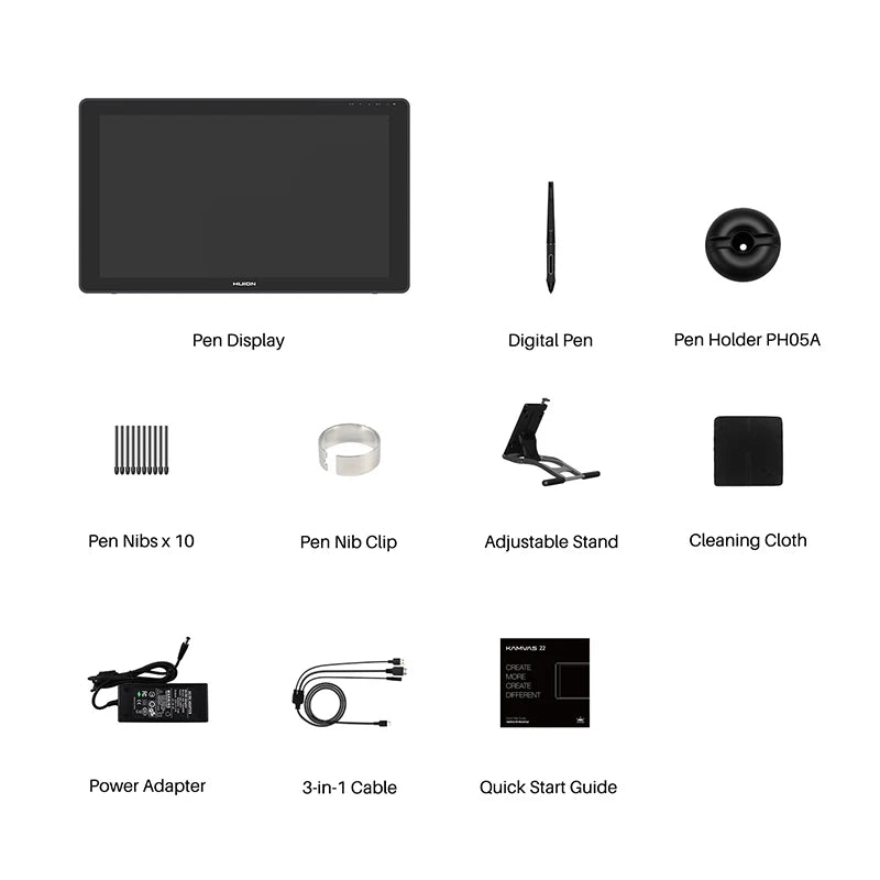 Full-featured type-C cable compatible with power cable of the 3-in-1 cable turns your Android mobile devices to the heart of the KAMVAS 22.