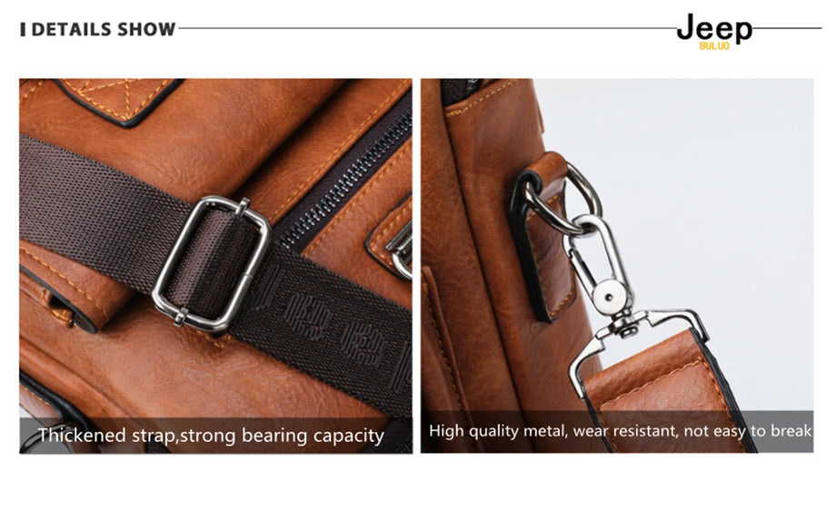 JEEP BULUO Brand Men Business Briefcase Leather Bag 2pcs/set Split for PC 13.3"