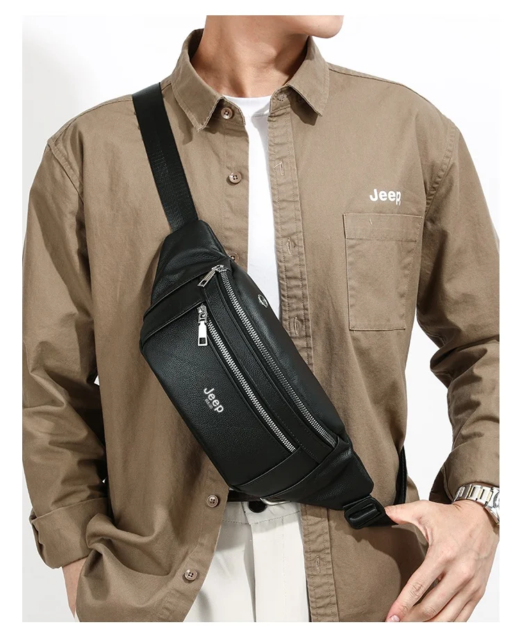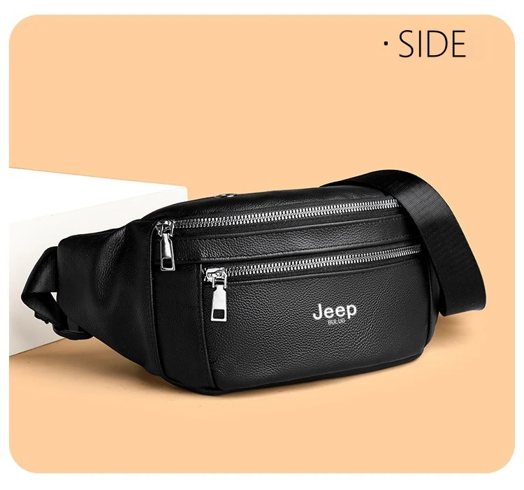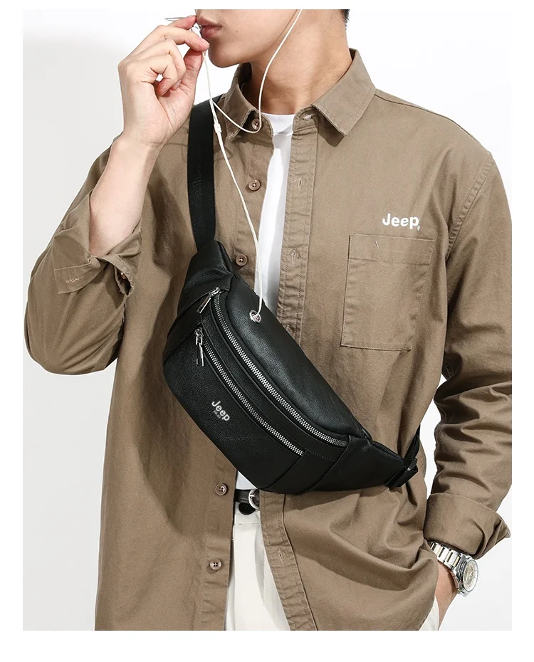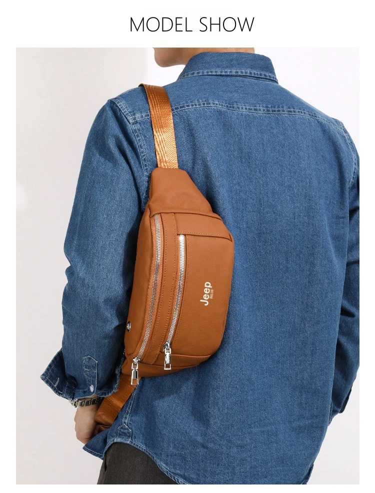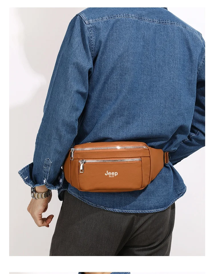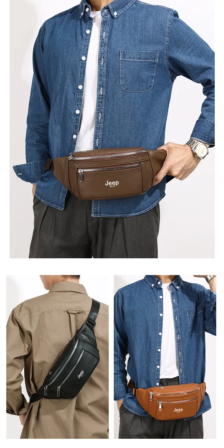 JEEP BULUO Brand Men's Chest Bag Genuine Leather Casual Shoulder Crossbody Bags