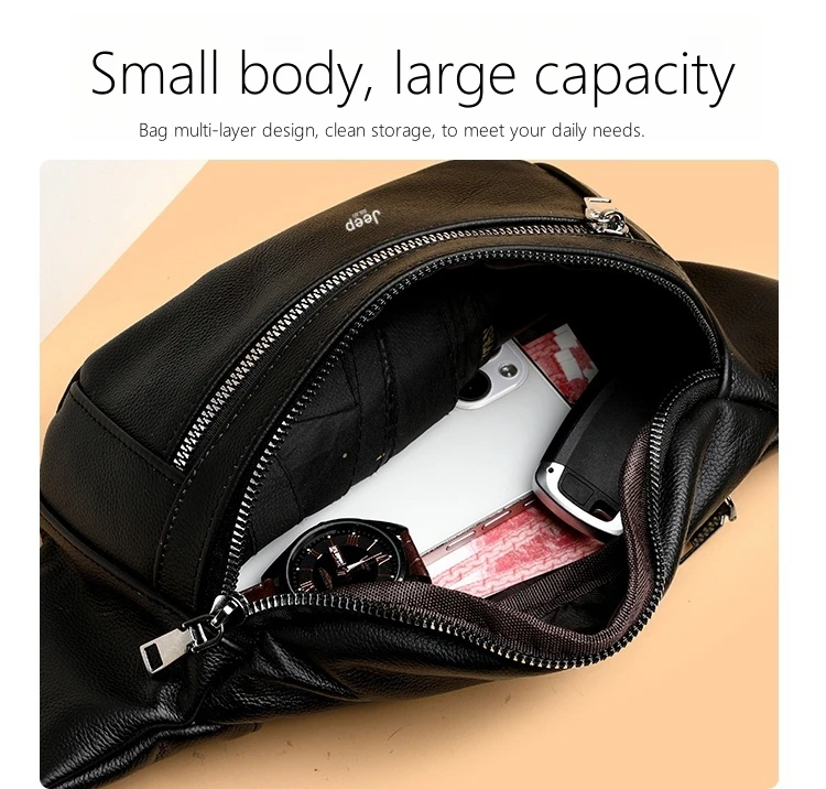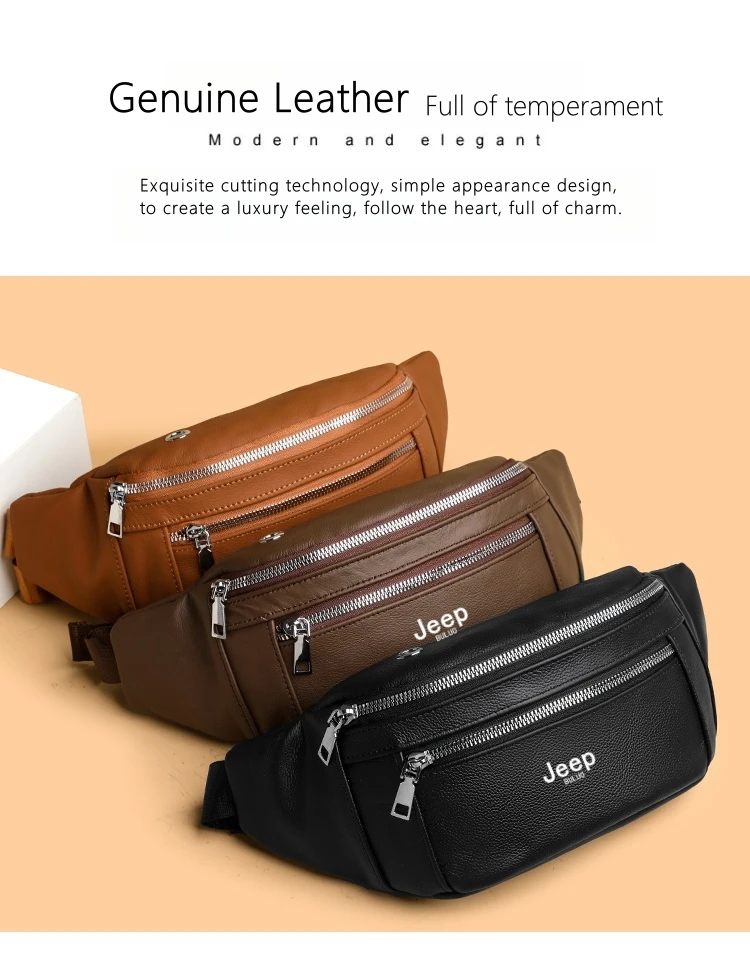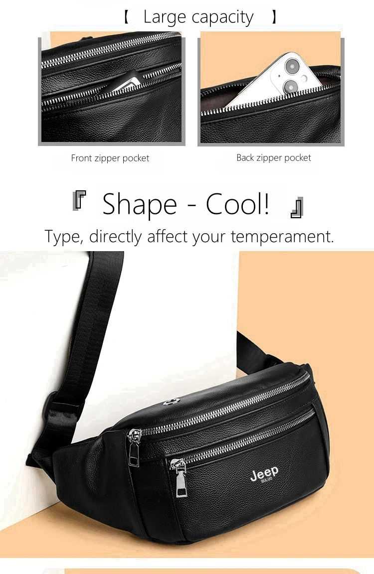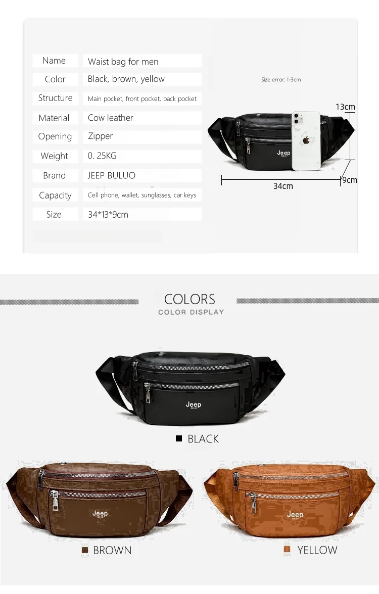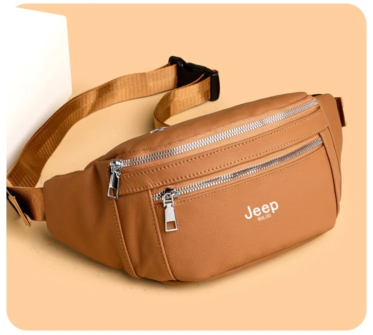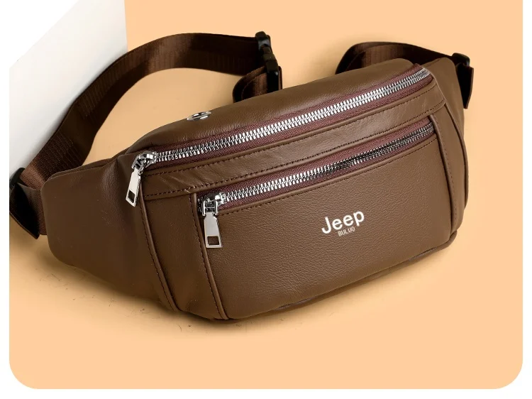 JEEP BULUO Brand Men's Chest Bag Genuine Leather Casual Shoulder Crossbody Bags