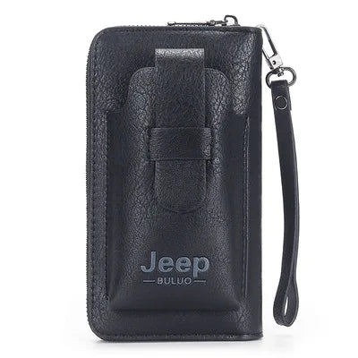JEEP BULUO Leather Brand Purse Phone Double Zipper Luxury Wallet Clutch Bag