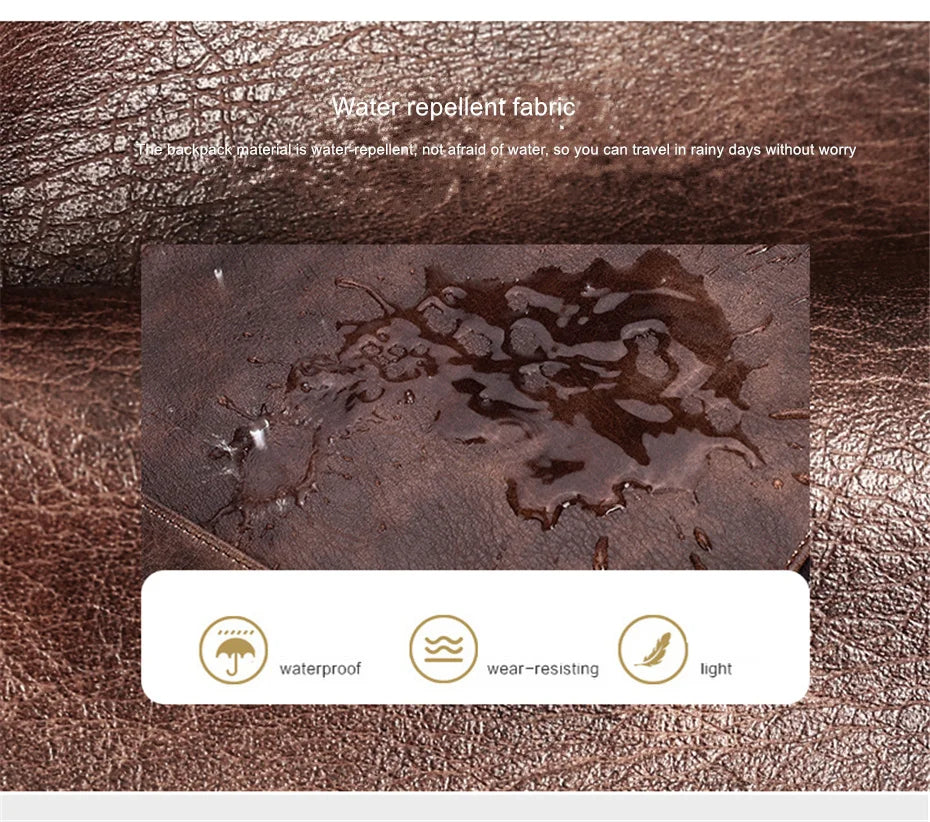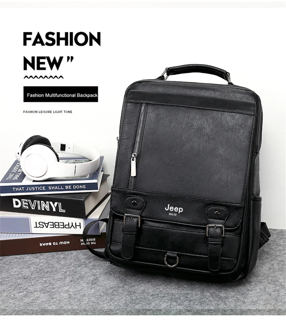 JEEP BULUO Leather Men Backpack Business 15.6" PC Bag Large Capacity Travel Bag