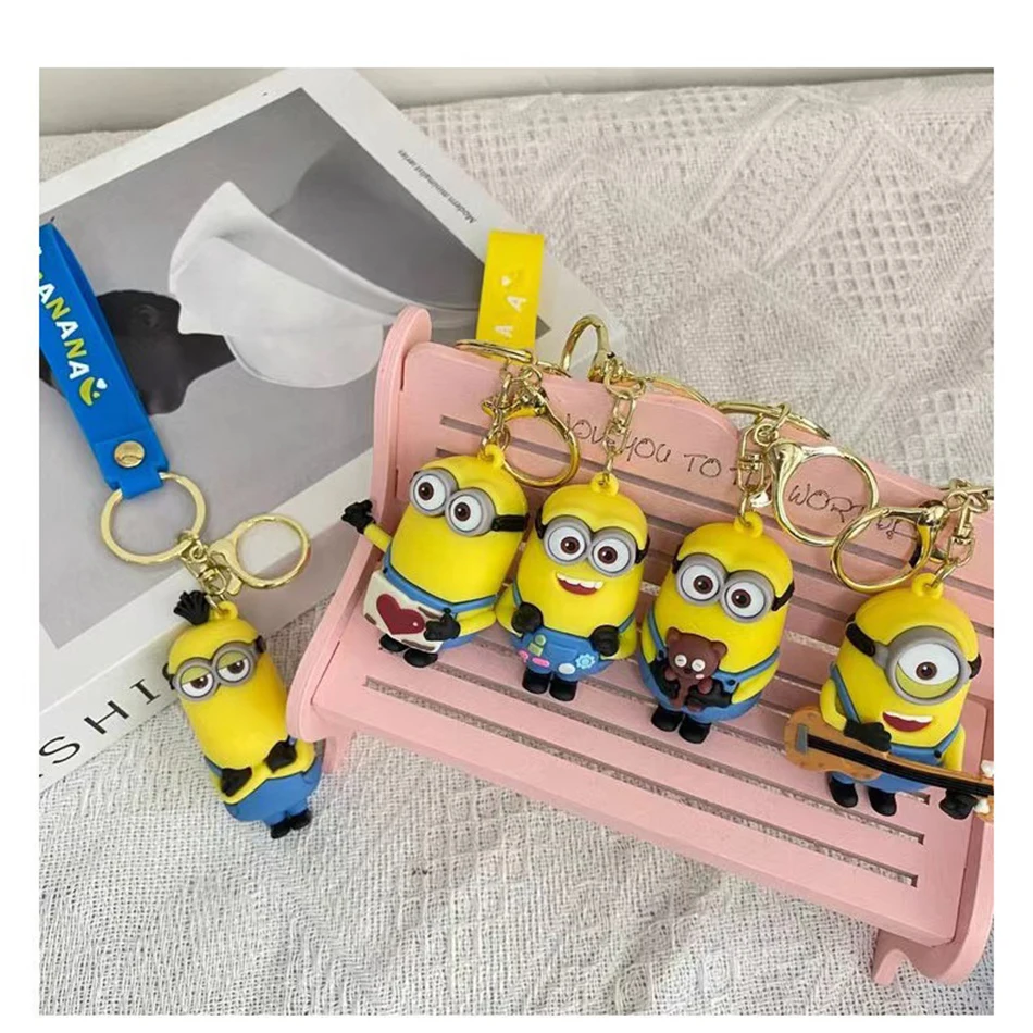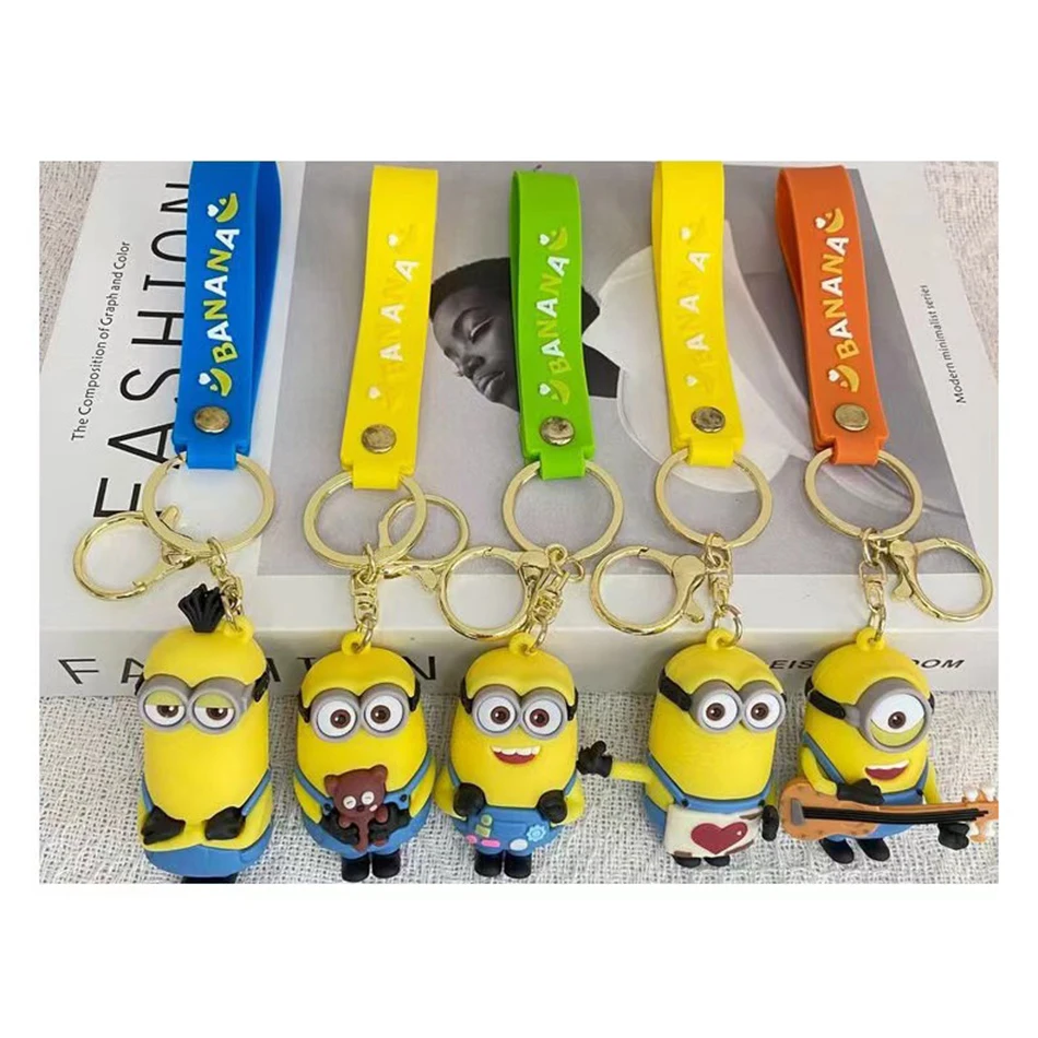 Kawai Minions Keychain Cartoon Toys Model Silicone Pendant Keyring Cosplay Hold