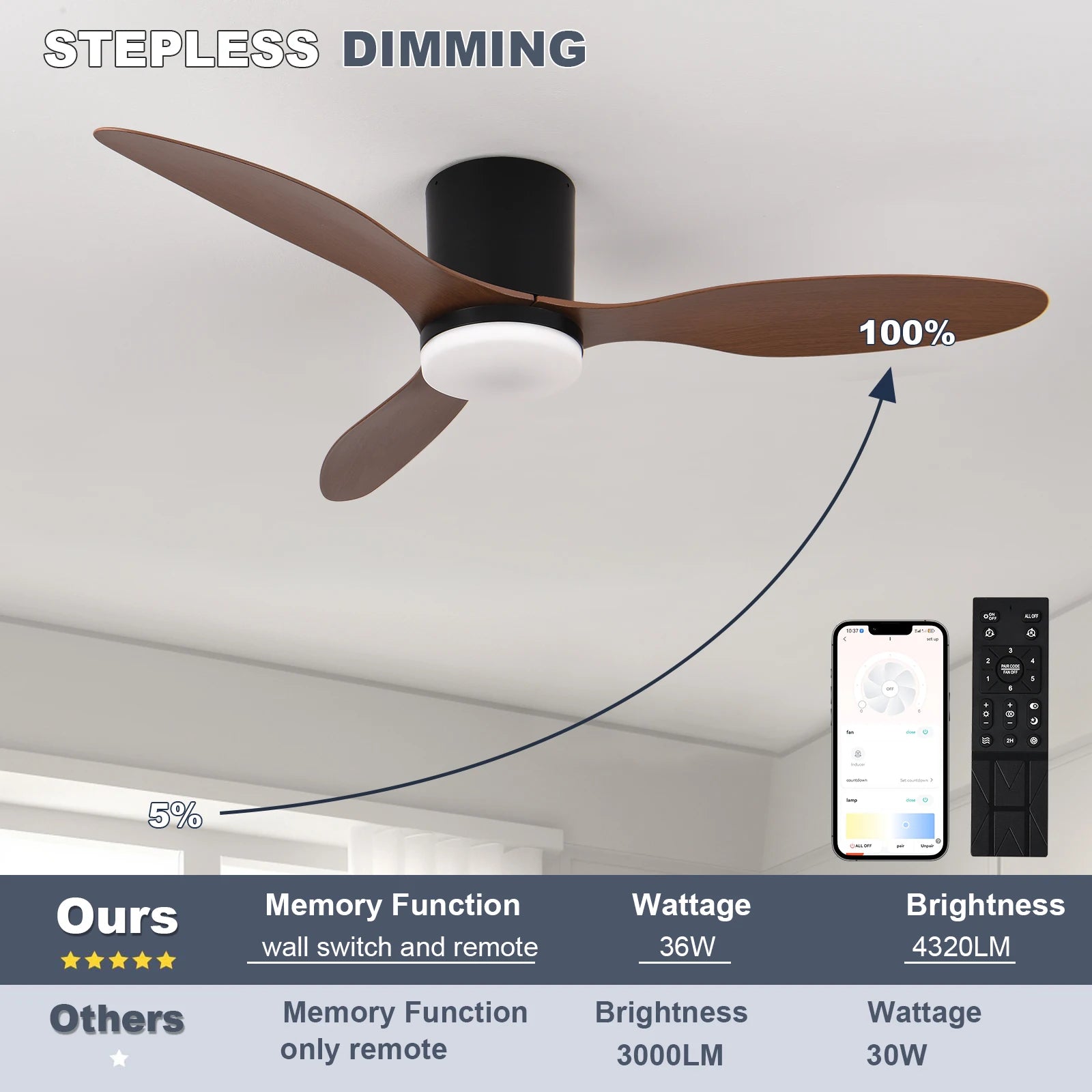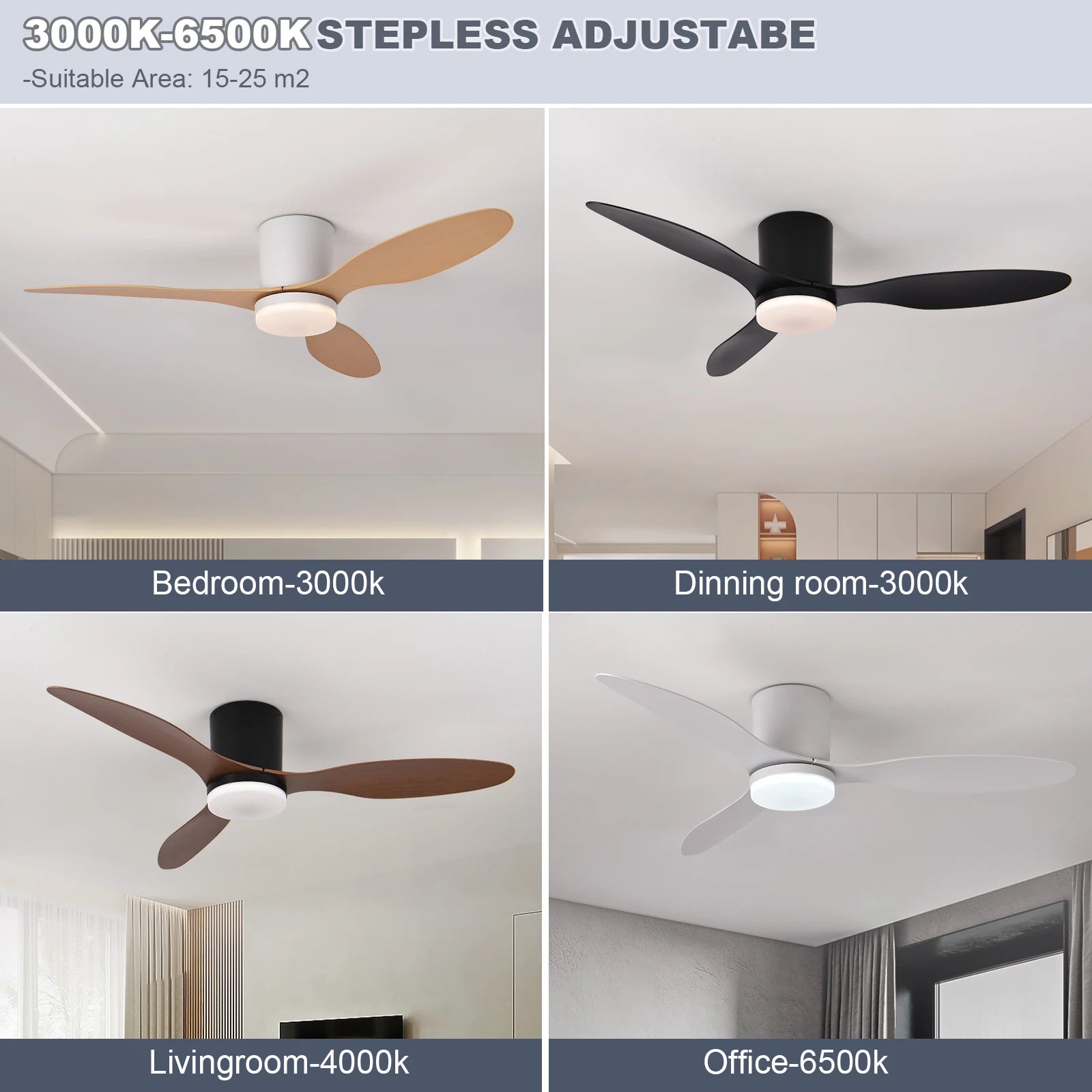 Modern Black White Low Floor DC Motor Ceiling Fans, Remote Control Simple Fans