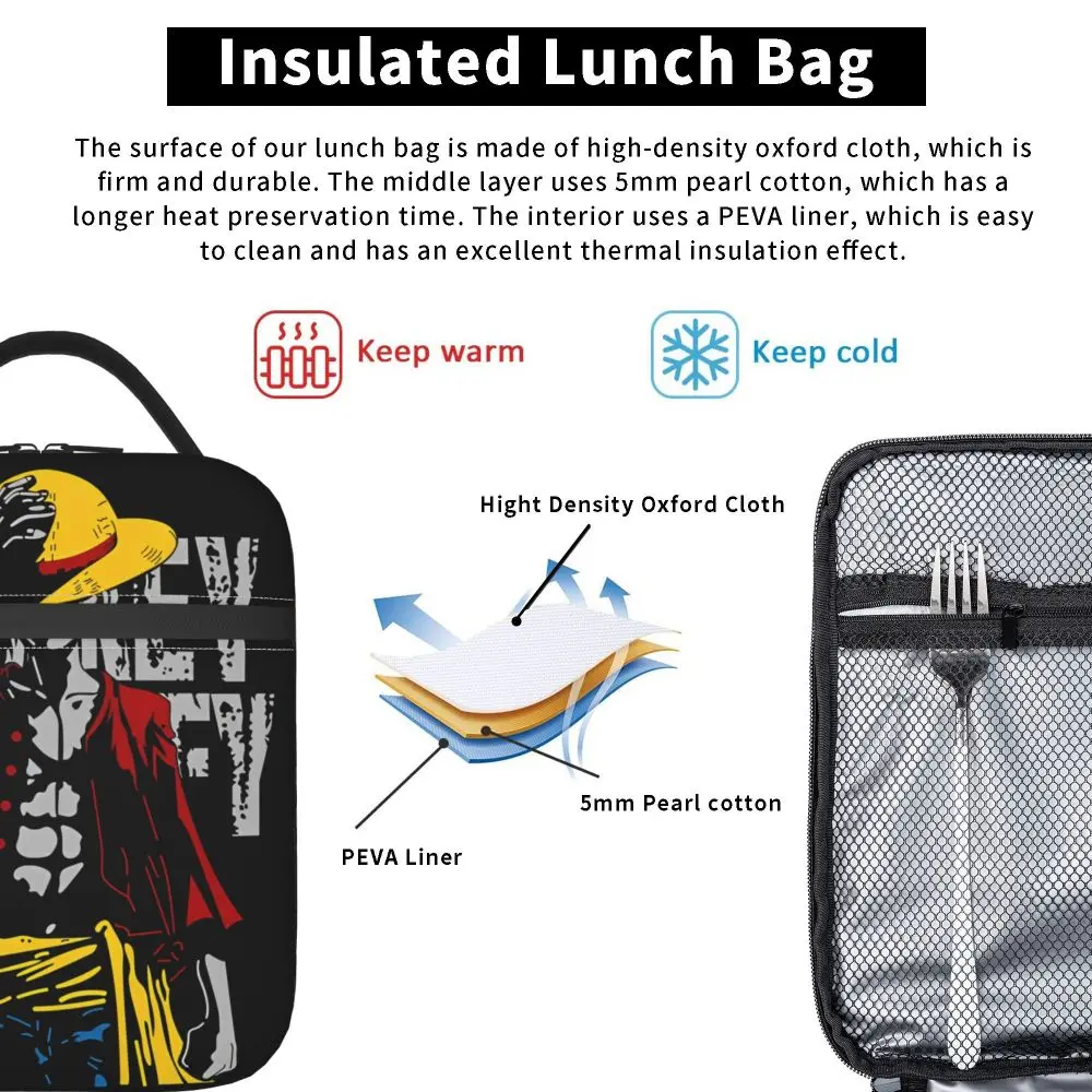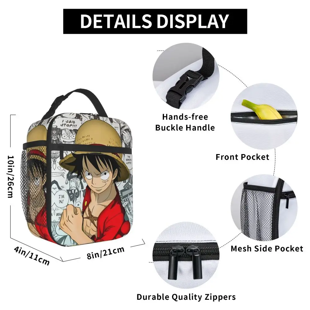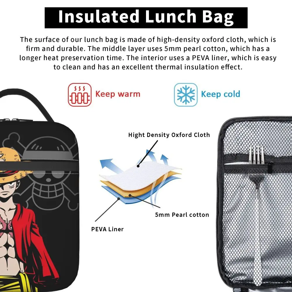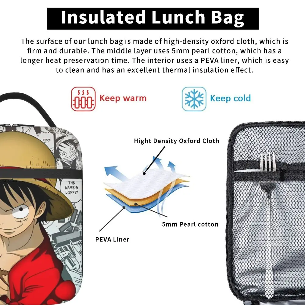 Monkey D. Luffy Anime One Piece Insulated Lunch Bag Leakproof Meal Container Cooler Bag Tote Lunch Box Office Travel Girl Boy