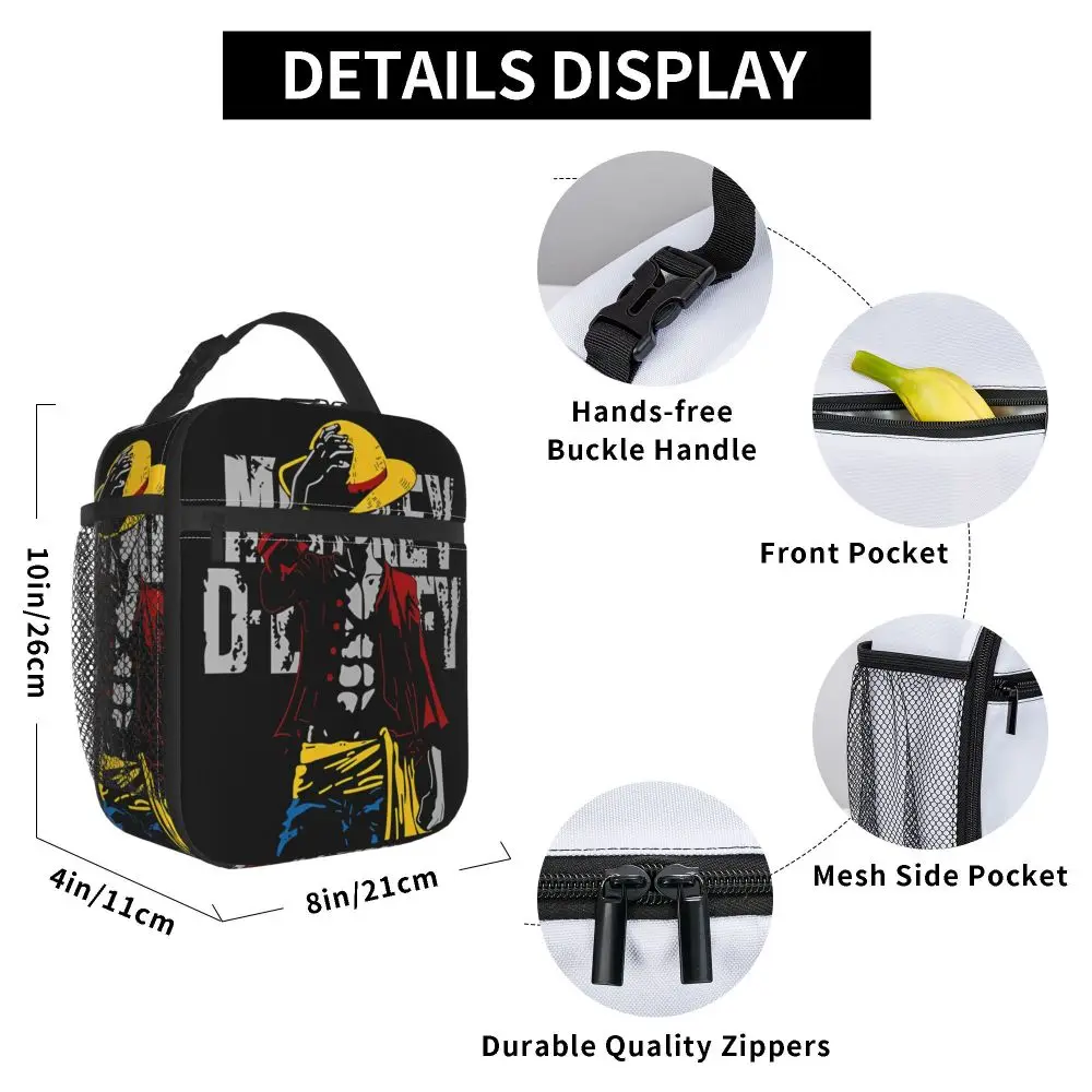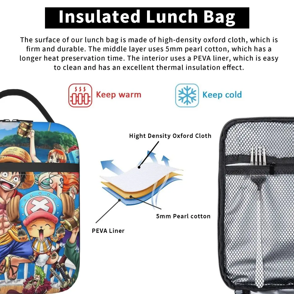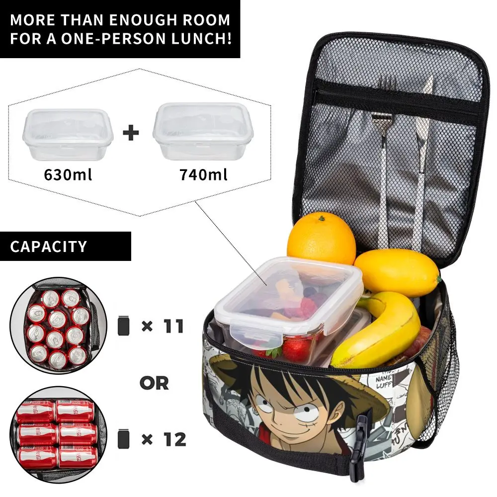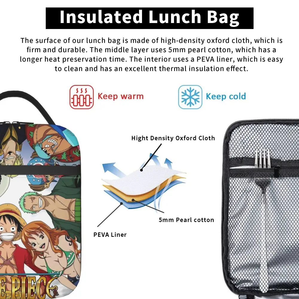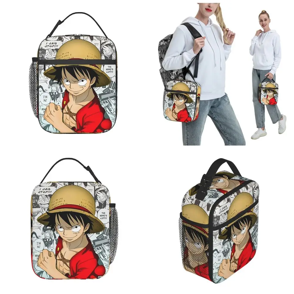 Monkey D. Luffy Anime One Piece Insulated Lunch Bag Leakproof Meal Container Cooler Bag Tote Lunch Box Office Travel Girl Boy