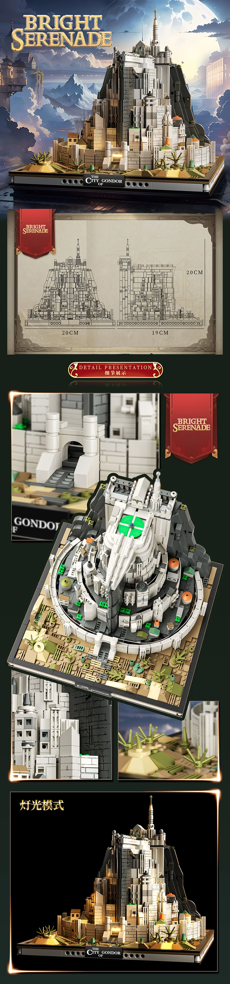 New White City Street Bright Serenade View Assembly w/ Lighting Building Blocks