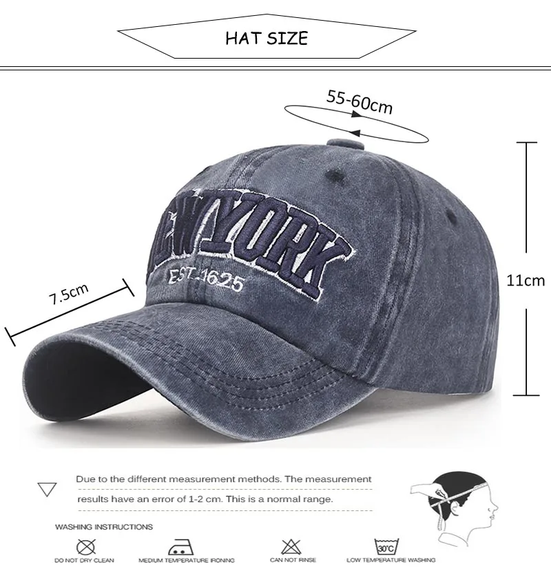 NEW YORK Embroidery Baseball Caps, Outdoor Casual Sun Hats ,Sports Washed Hats