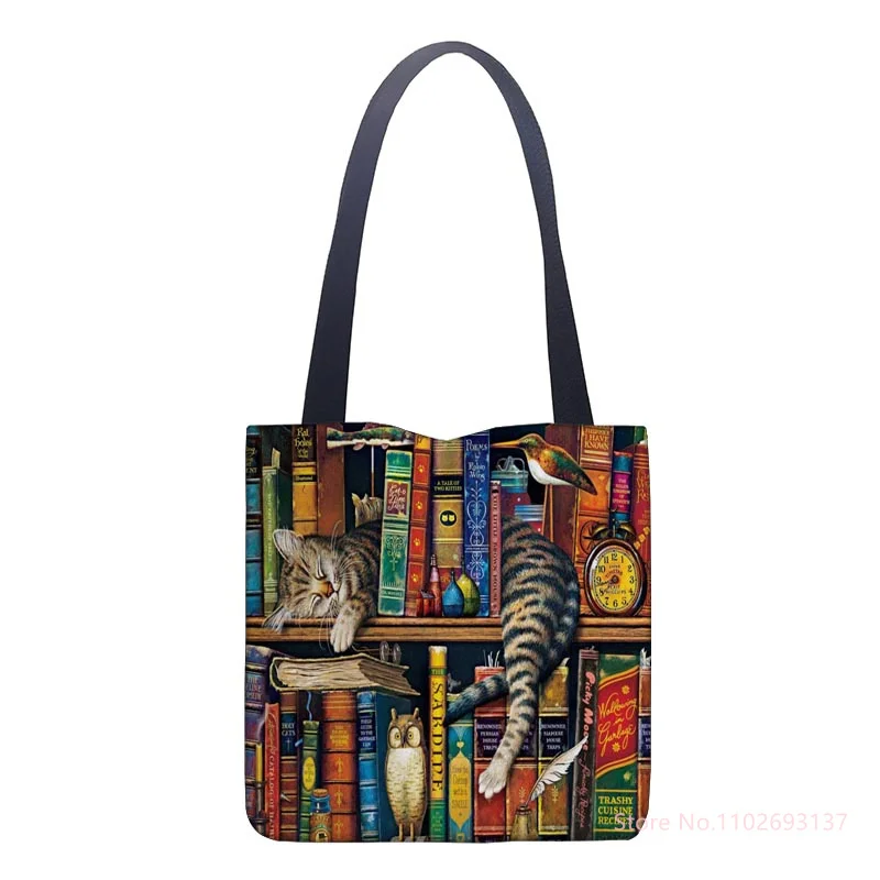 Oil Painting Cat Shopping Bag Eco Reusable Female Tote Bag College Retro Handbag