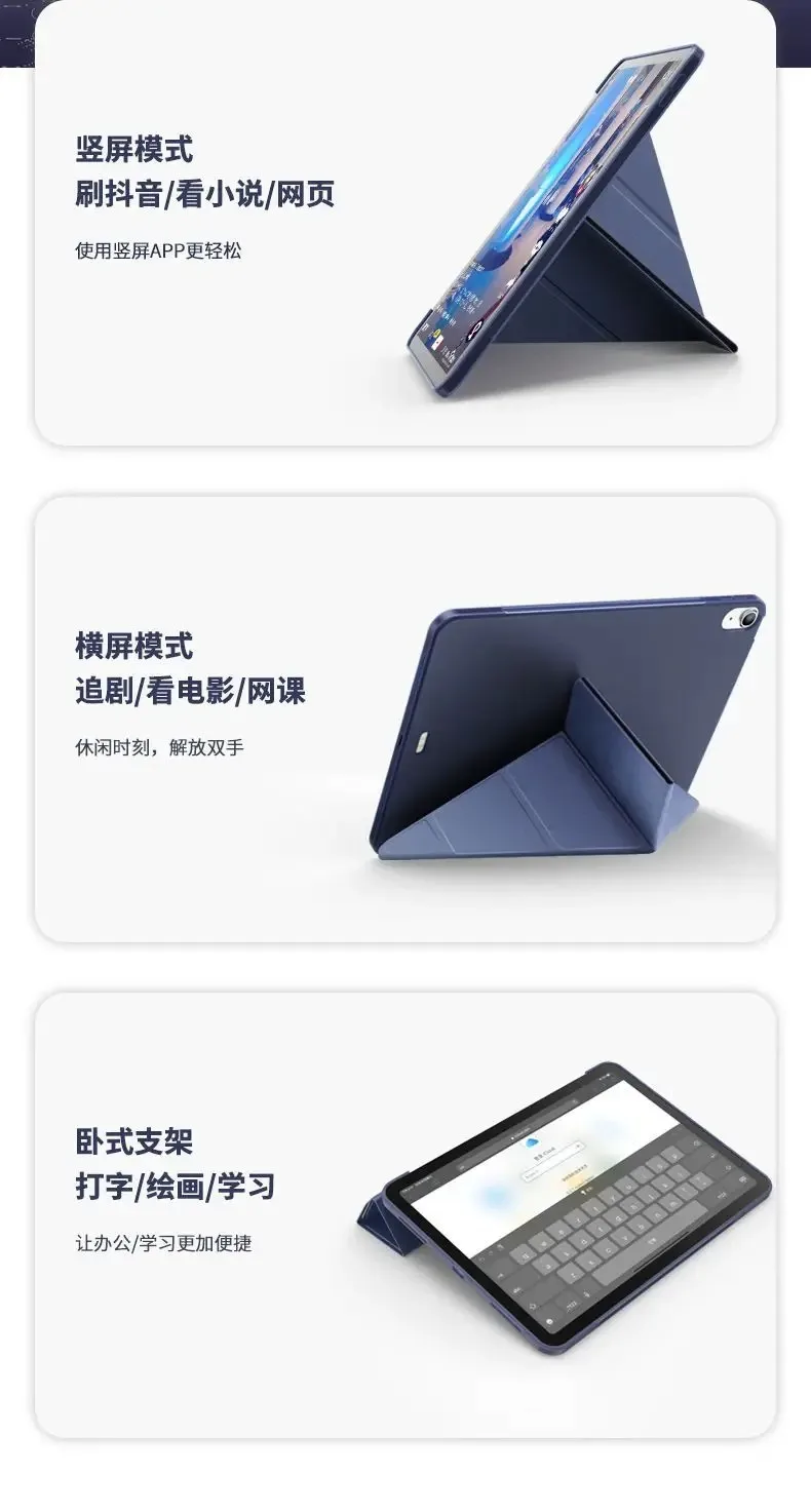 [Trifold Stand Design]: The trifold magnetic folding design enables both viewing and typing stand modes.