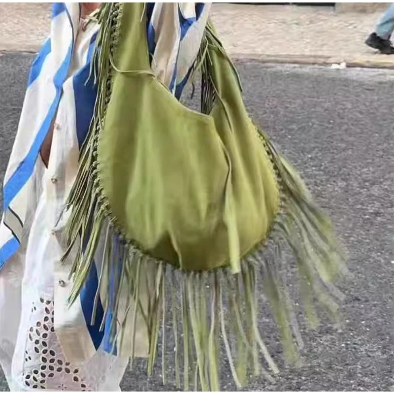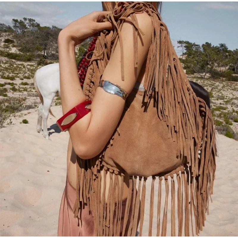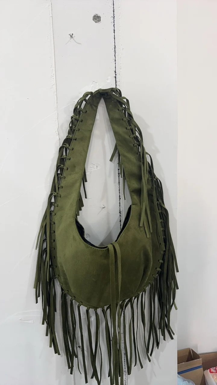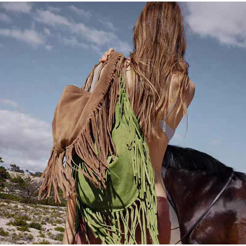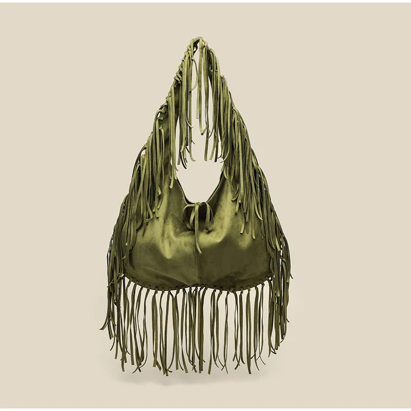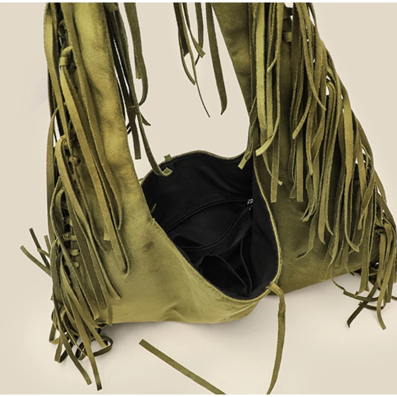 Retro Tassel Women Armpit Bag Suede Design Dumpling Shoulder Bag Western Cowboy