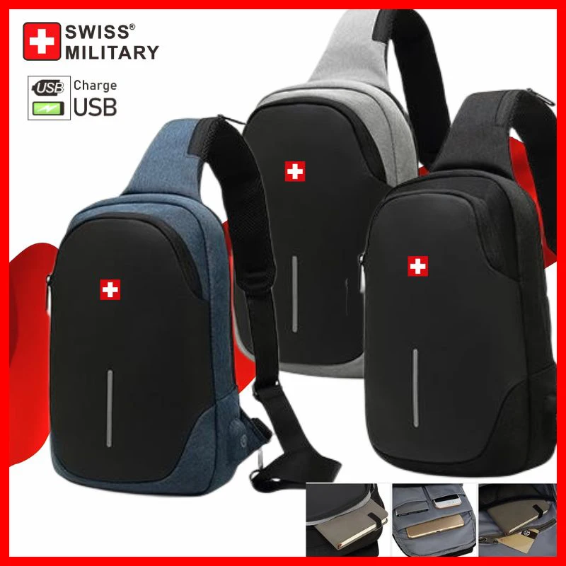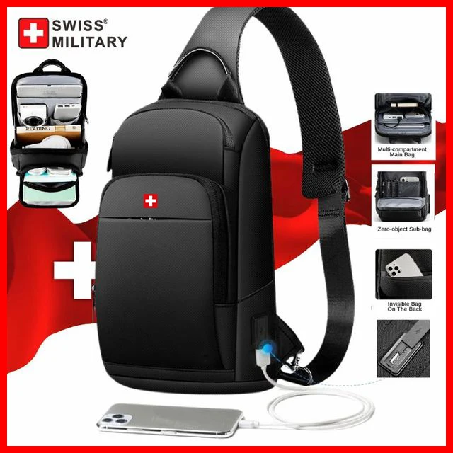 SWISS MILITARY Chest Bag Anti-Thief Men Crossbody Waterproof Travel Shoulder Bag