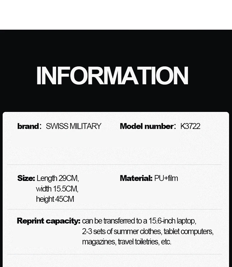 SWISS MILITARY Laptop Backpack Men 15.6 Inch Multi Pocket Expandable Backpack Waterproof USB School Backpack Business Travel Bag