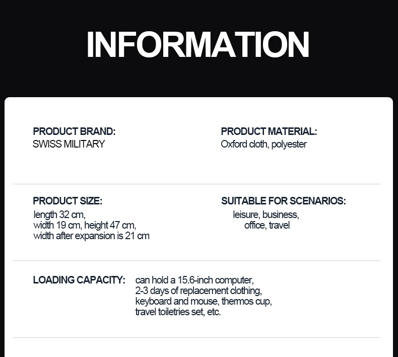 SWISS MILITARY Travel Multifunction Bag USB Charging Waterproof Laptop Backpack