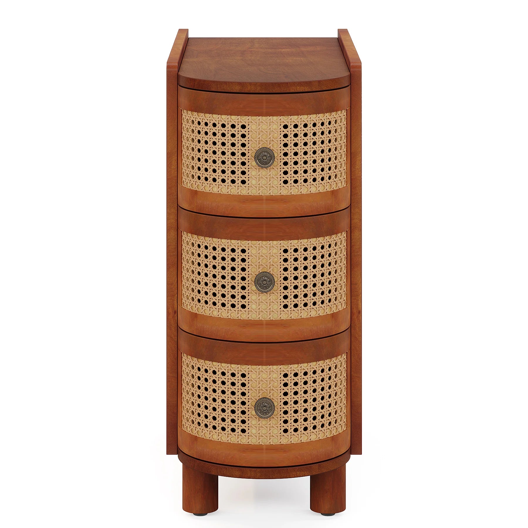 Classic & Vintage Style - Our side table is an Early America-style bedside table in brown, has an attractive vintage appearance, which can be perfectly matched with any different style; the smooth surface that it's easy to clean; and clear textured, elegance, and exquisite; arc unique design look more comfortable and gentle, reduce the risk of knock, more safety for children.