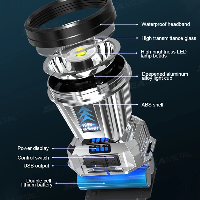 Ultra-Bright Head-Mounted w/ Light Emergency Led Flashlight Fishing Lamp USB