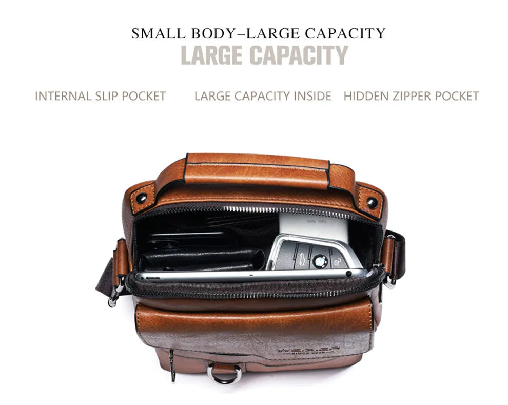 Weixer Men Crossbody Bag Shoulder Zippers Handbag Leather Messenger Tote Bag 01