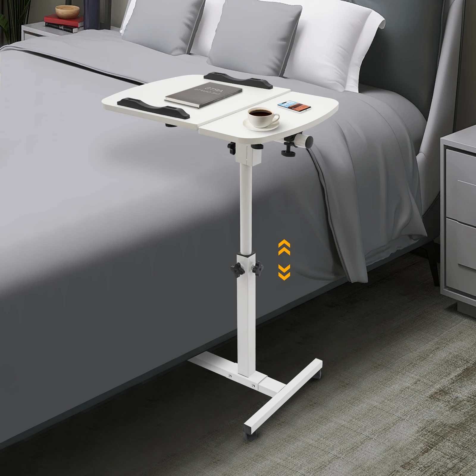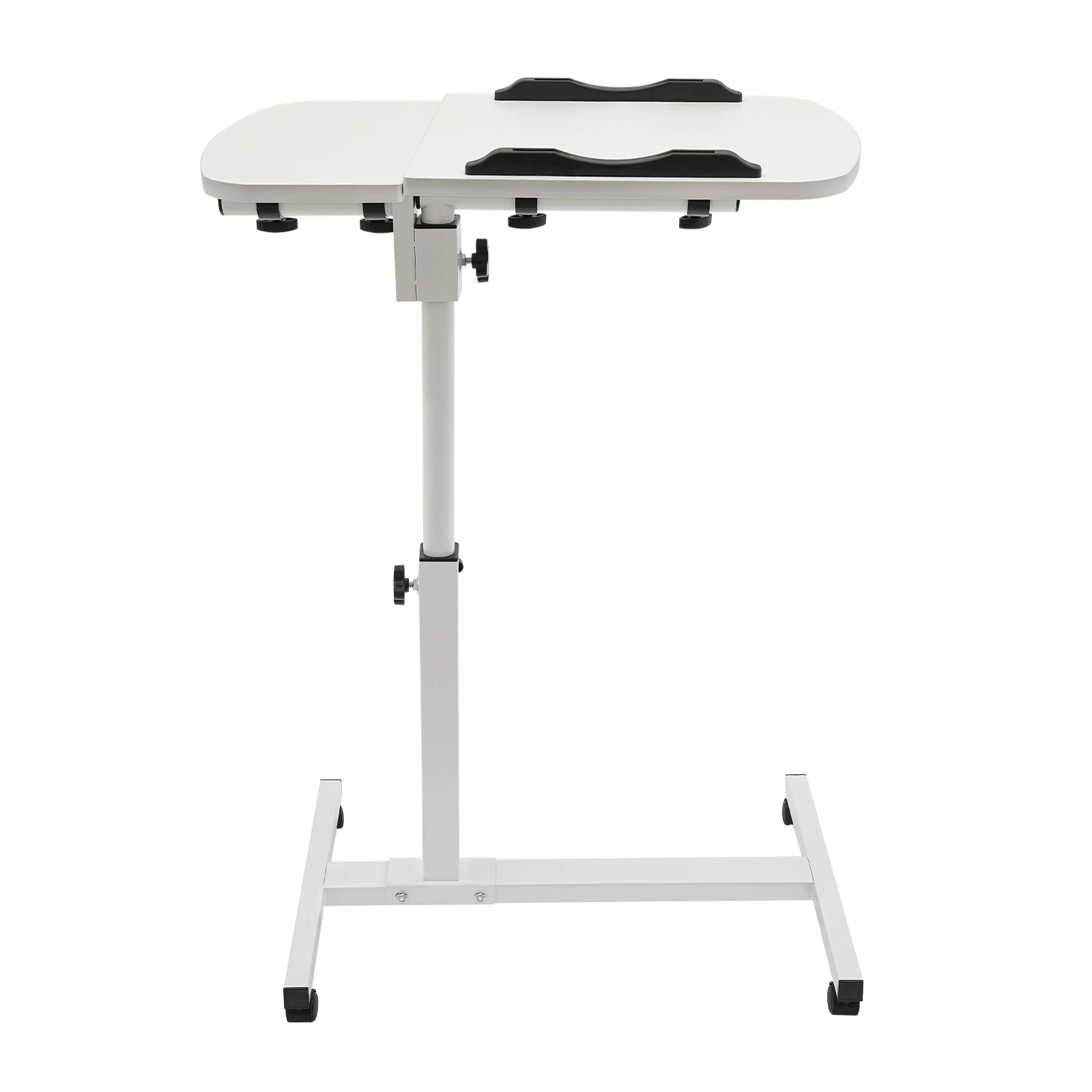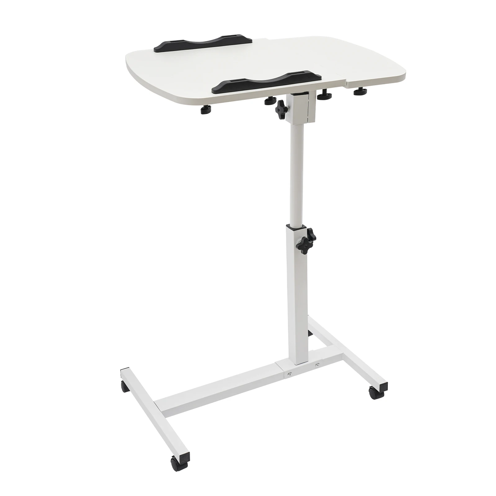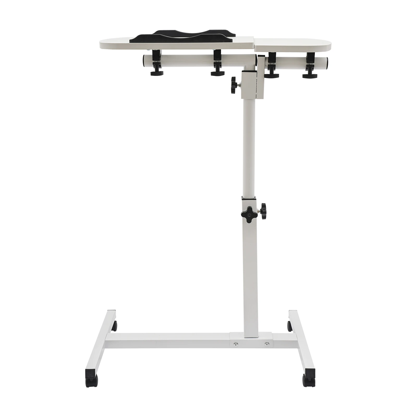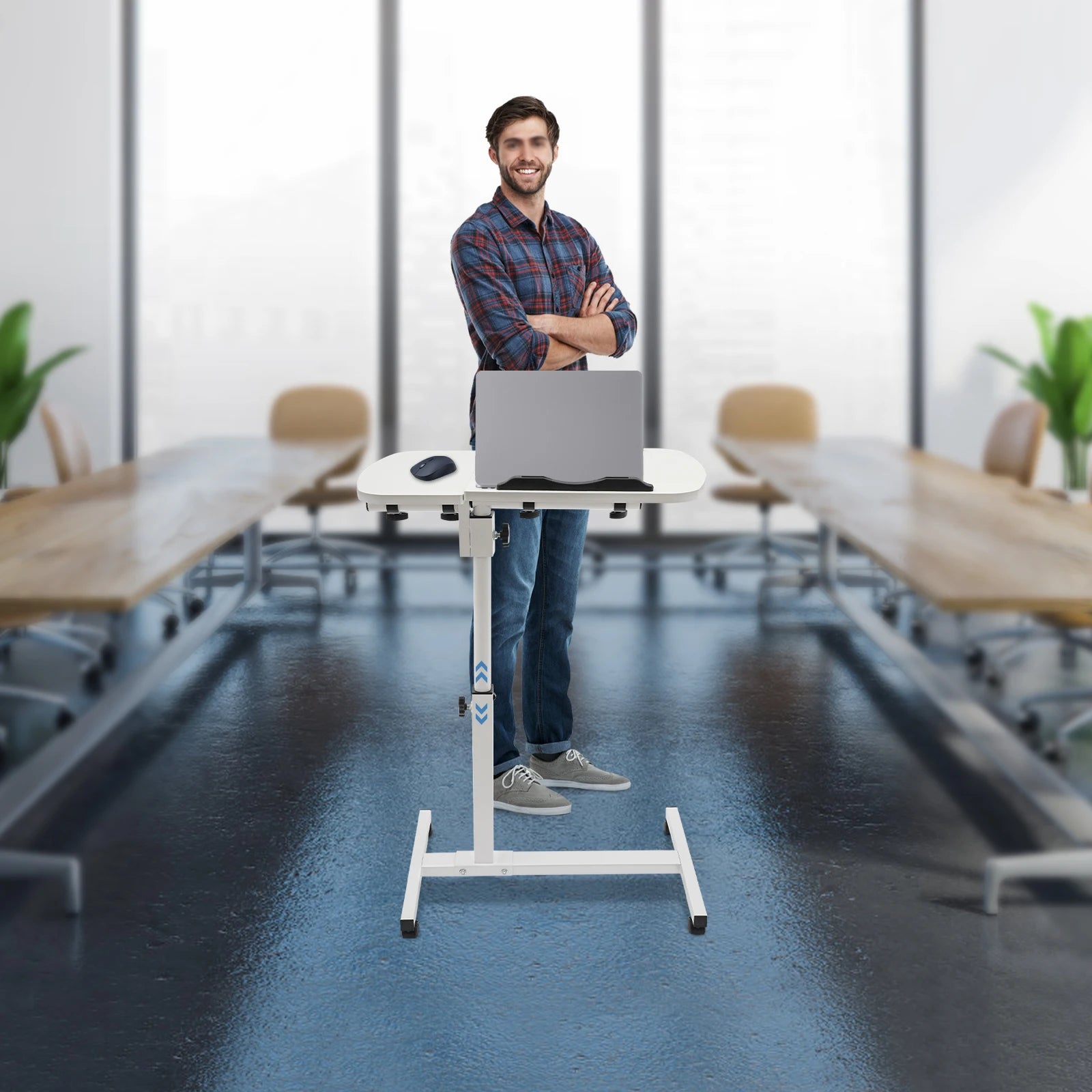 White Carbon Steel Adjustable Laptop Desk Stand With 360° Swivel Wheels w/Brakes