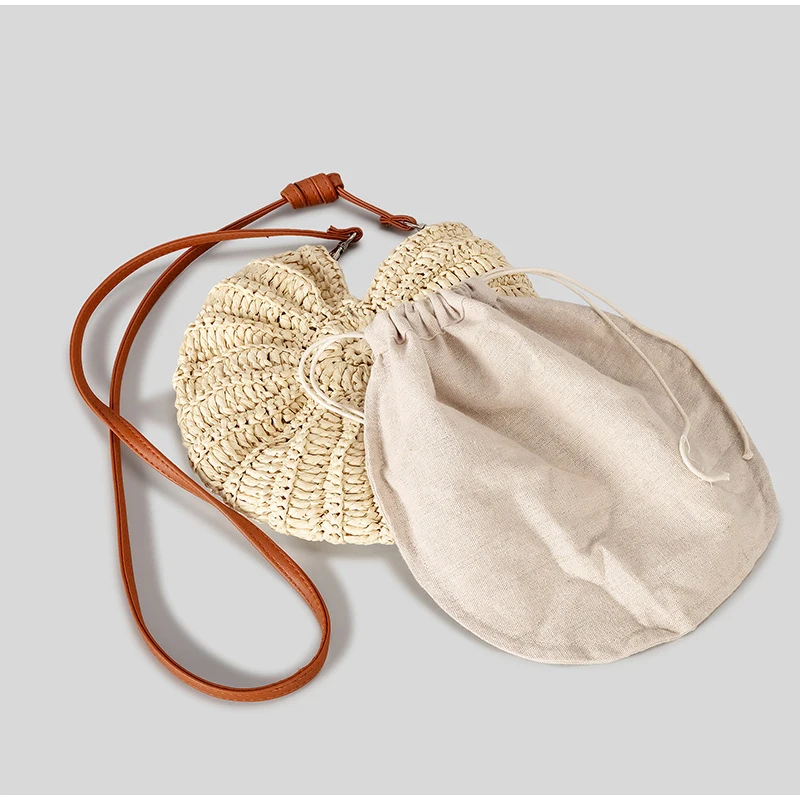 Summer Round Conch Grass Woven Shoulder Bag, Beach Vacation Bag, Fashionable Handbag