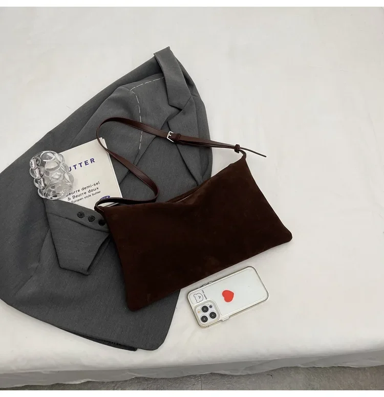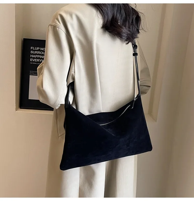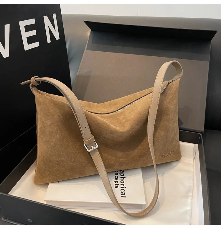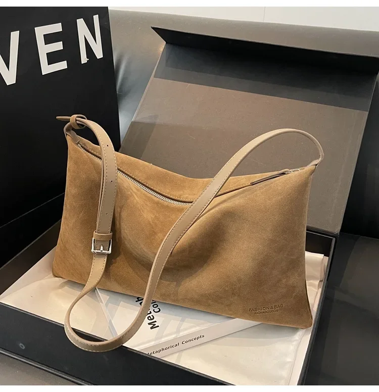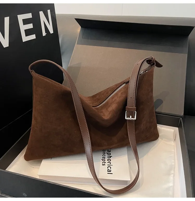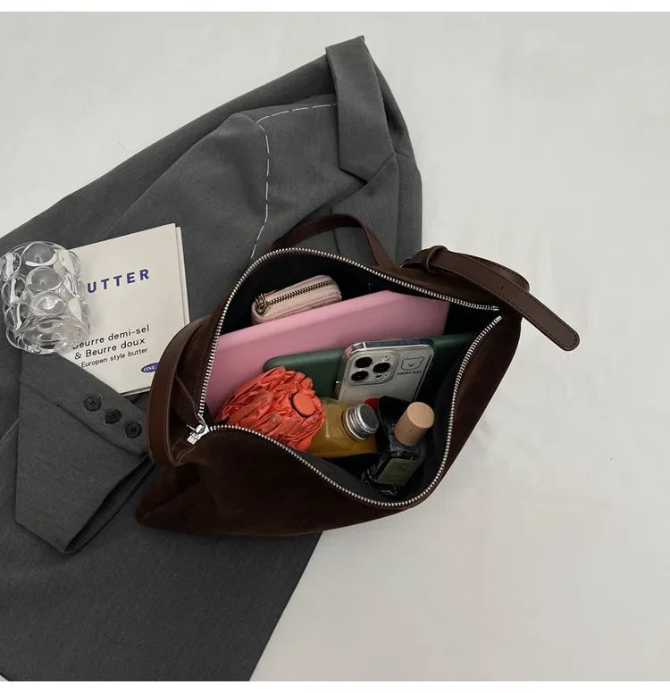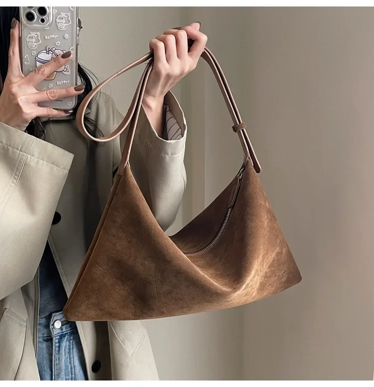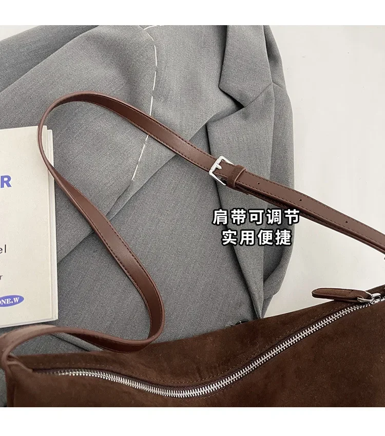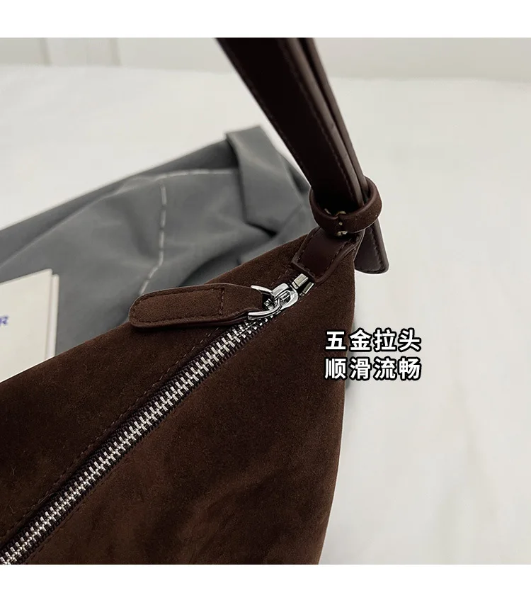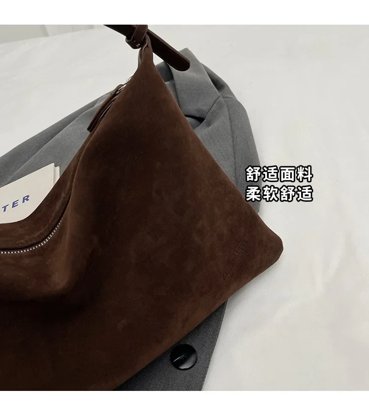 Women's Slouchy Vintage Frosted Suede Shoulder Underarm Bag Simple Tote Bag